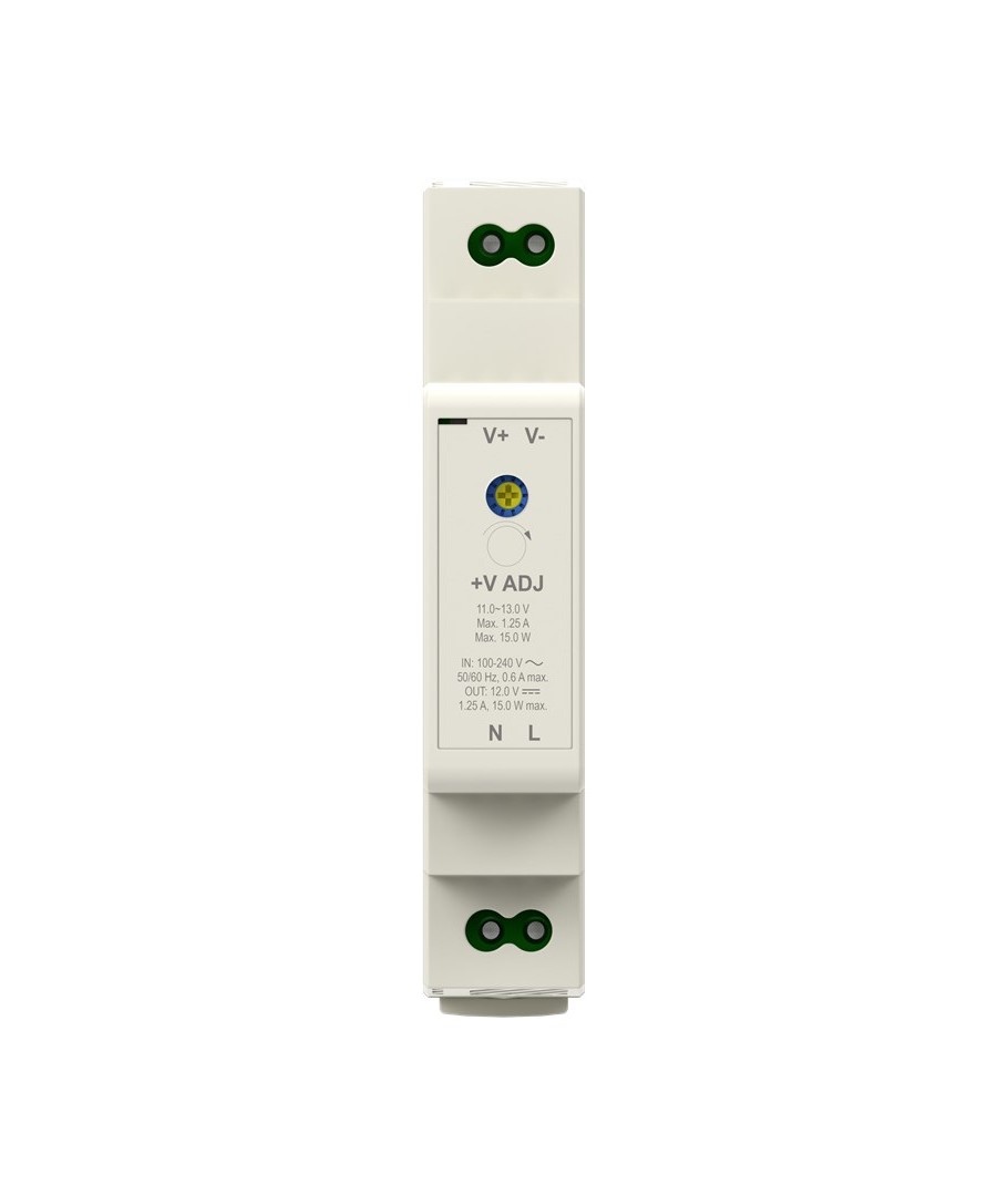 12V DC 1,25A strömförsörjning för DIN-skena montering.