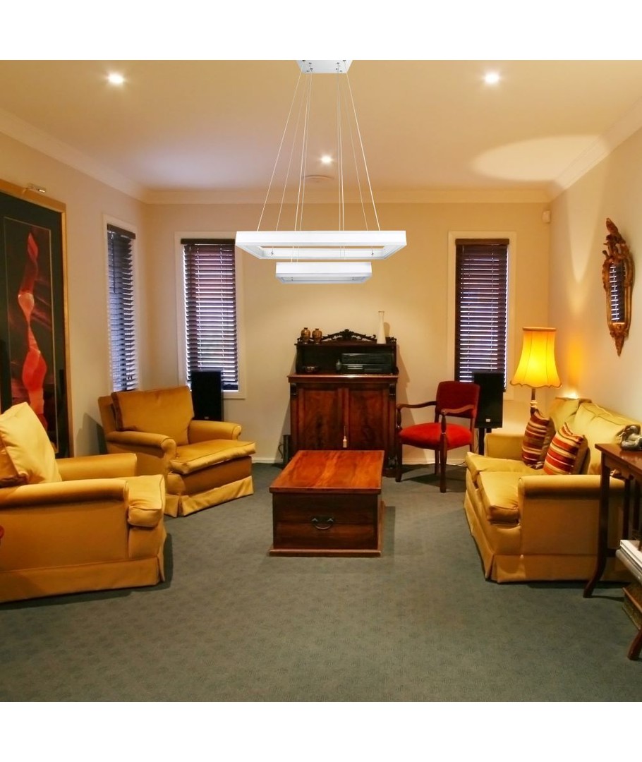 Denna stilrena ljuskrona kombinerar design och funktionalitet för att skapa en behaglig atmosfär i ditt hem. Med en effekt på 113W och en ljusstyrka på 6300 lm, ger den ett kraftfullt och jämt ljus i hela rummet.