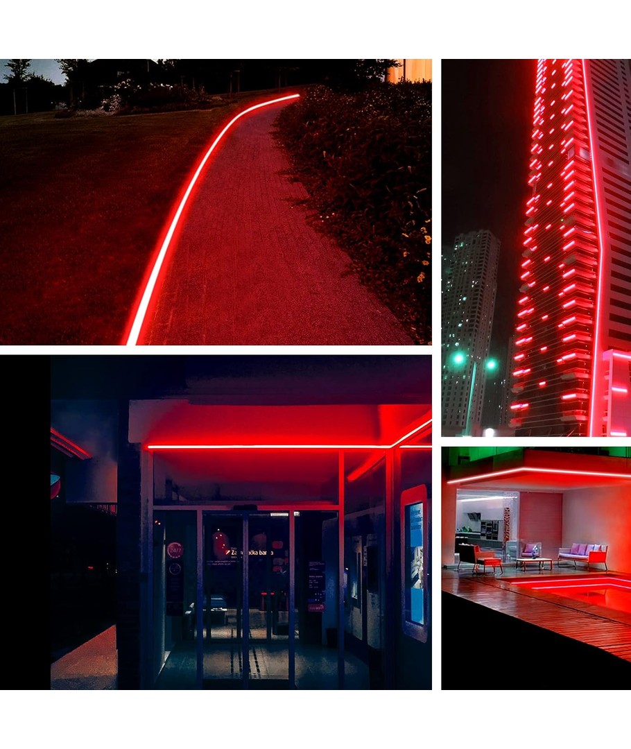 Denna 5 meter långa röda neon COB-strip erbjuder en energiförbrukning på 11,5W per meter och är speciellt framtagen för att anslutas till 230V. Med sina 288 lysdioder och en bred spridning på 120 grader, garanterar den en jämn och effektiv ljusfördelning i varje miljö.