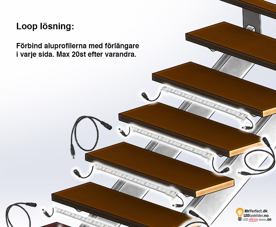 LED strippen er stöpt i silikon och är en superenkel lösning till både inomhus och utomhus trappbelysning.