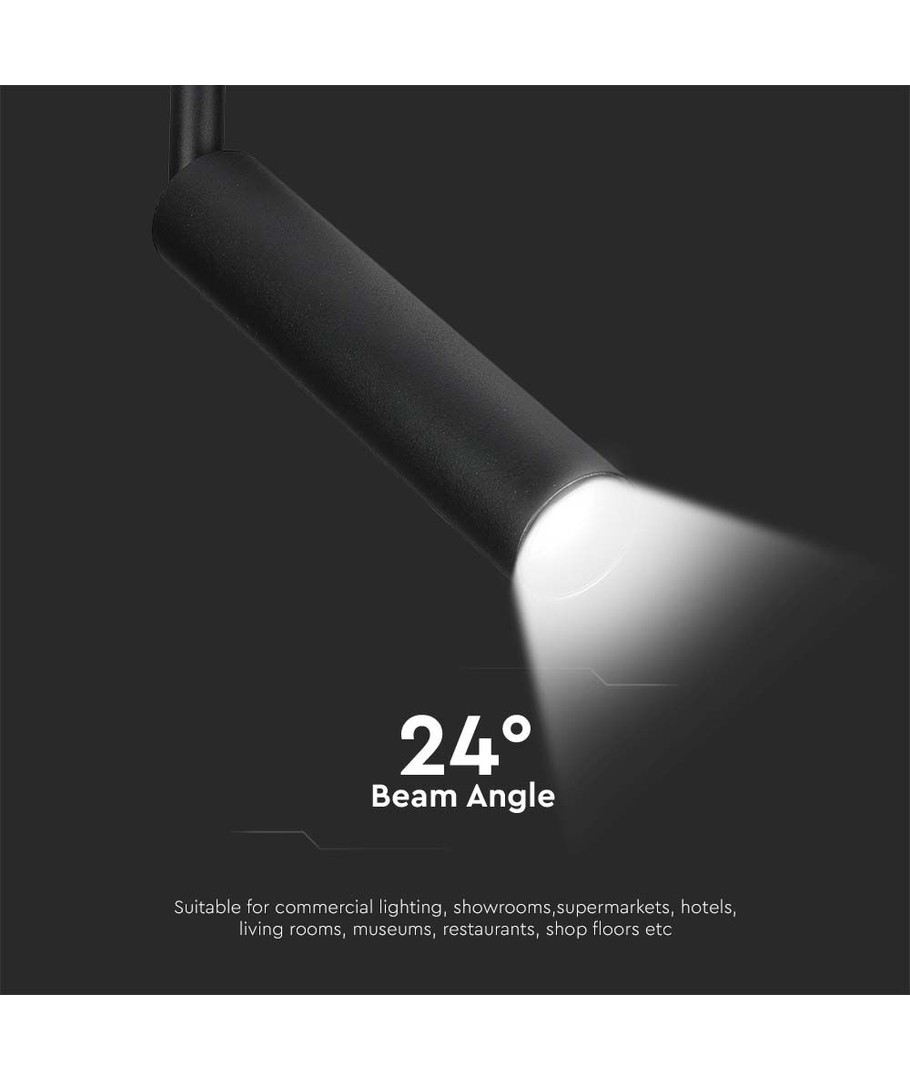 Denna LED skenspot kombinerar en effekt på 7W med en ljusstyrka på 700 lm, vilket ger ett klart och fokuserat ljus med en spridningsvinkel på 24 grader. Den är perfekt för att skapa en kontrollerad belysning i olika miljöer.