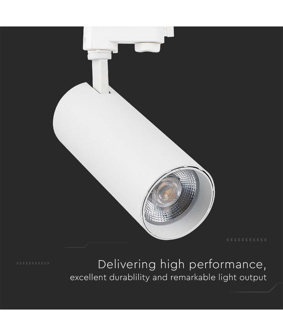 Denna skenspot är utmärkt för dig som söker en effektiv och stilren ljuskälla med hög prestanda. Utformad för att ge ett fokuserat ljus på 35 grader, garanterar den både funktion och estetik i alla miljöer. Ljuset har en effekt på 40W och levererar en imponerande ljusstyrka på 3150 lm.
