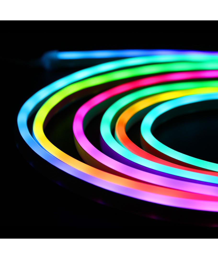 Upplev en värld av färger med vår 3W/m RGBIC 7x15 Neon Flex strip - en 250cm RGBIC neon flex, som ger ljus och liv till vilket rum som helst med sitt dynamiska färgspel och flexibla design.
