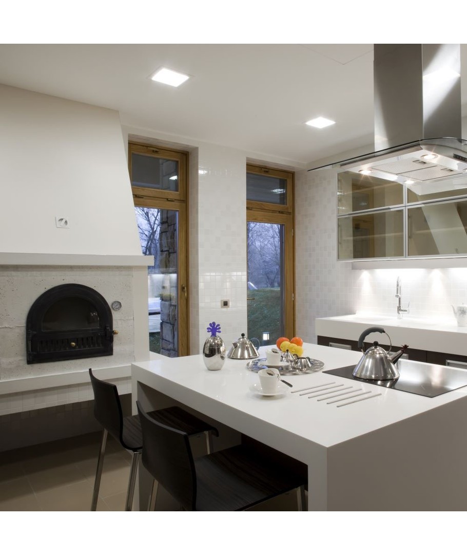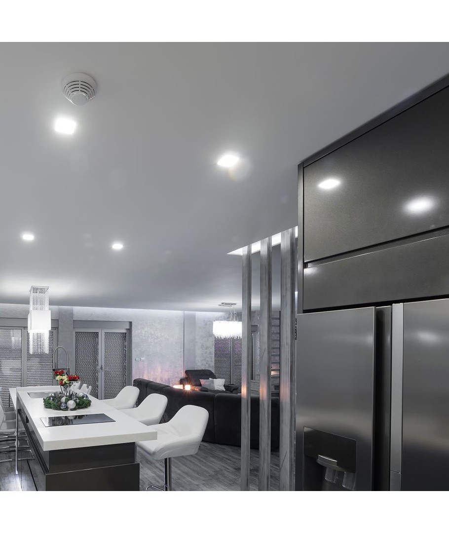 Designad i en stilren fyrkantig form med dimensionerna 170 x 32 x 170 mm, avsedd för en hålstorlek på 75 mm. Den är lätt att integrera i olika miljöer tack vare dess slimmade design.