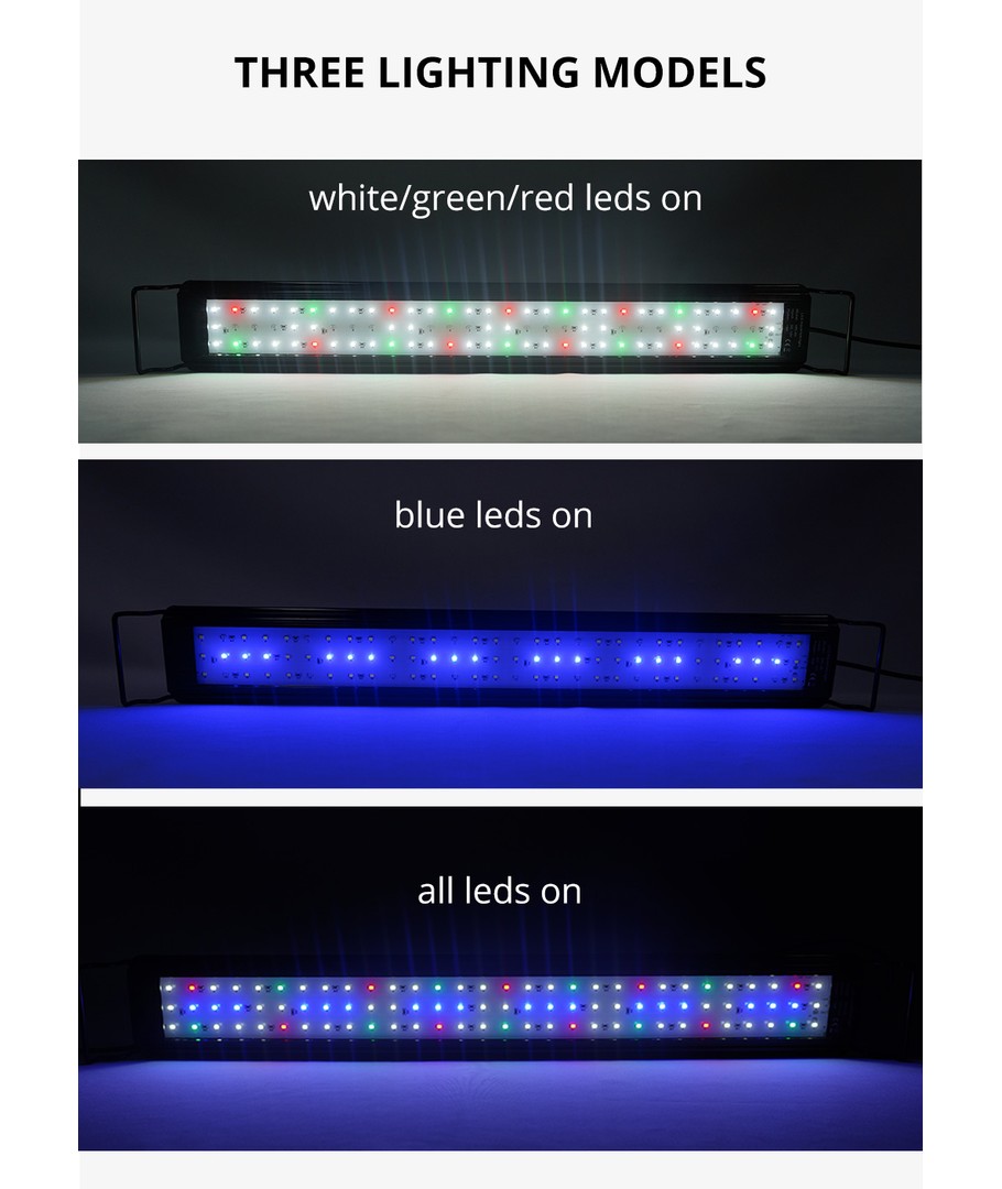 Med denna akvariumarmatur kan du enkelt anpassa ljusets längd för att passa olika akvariumstorlekar, vilket gör den flexibel och användarvänlig. Skapa en optimal miljö för dina vattenlevande invånare och förvandla ditt akvarium till en strålande mittpunkt i ditt hem.
