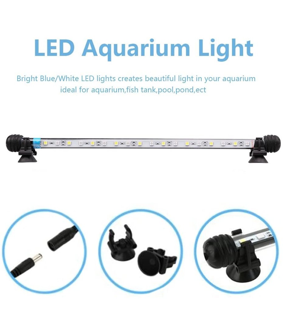 Den här akvariearmaturen med vit och blå LED-belysning är det perfekta tillägget för att framhäva ditt akvarium och skapa en trivsam miljö för dina vattenlevande vänner. Med sin pålitliga och långvariga prestanda gör den till en utmärkt investering för alla akvarieentusiaster.