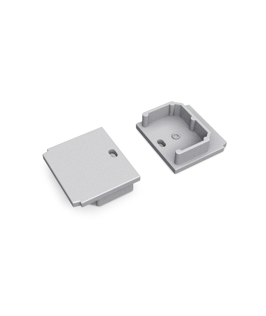 Ändstycke LINEA-IN20 TRIMLESS - Med hål, silverfärgad är en praktisk komponent för aluminiumprofiler.