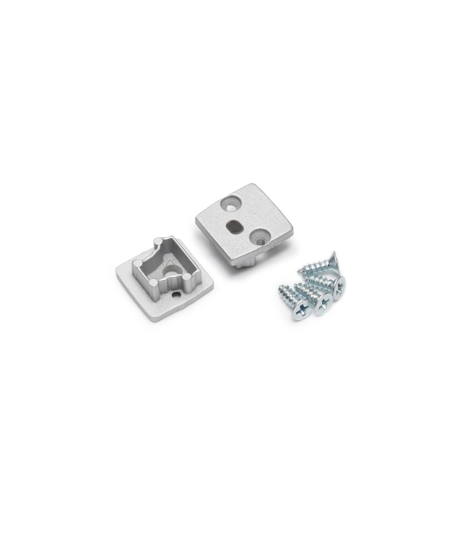 Endstycke FLOOR12 - Med hål, silverfärgad, är en pålitlig komponent för aluminiumprofiler som säkerställer ett snyggt avslut och möjliggör kabelgenomföring.