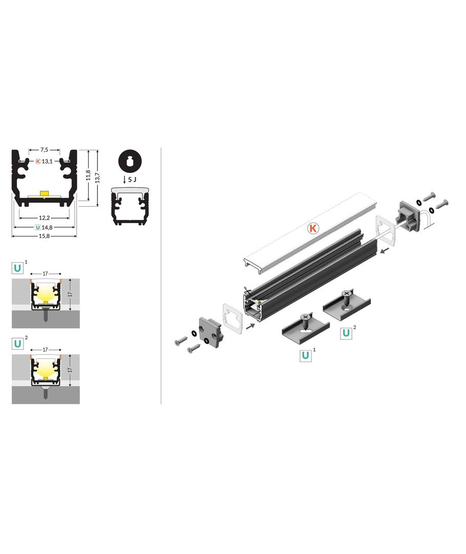 1m aluprofil FLOOR12 K/U är en speciell LED-skena designad för kakelinstallationer.