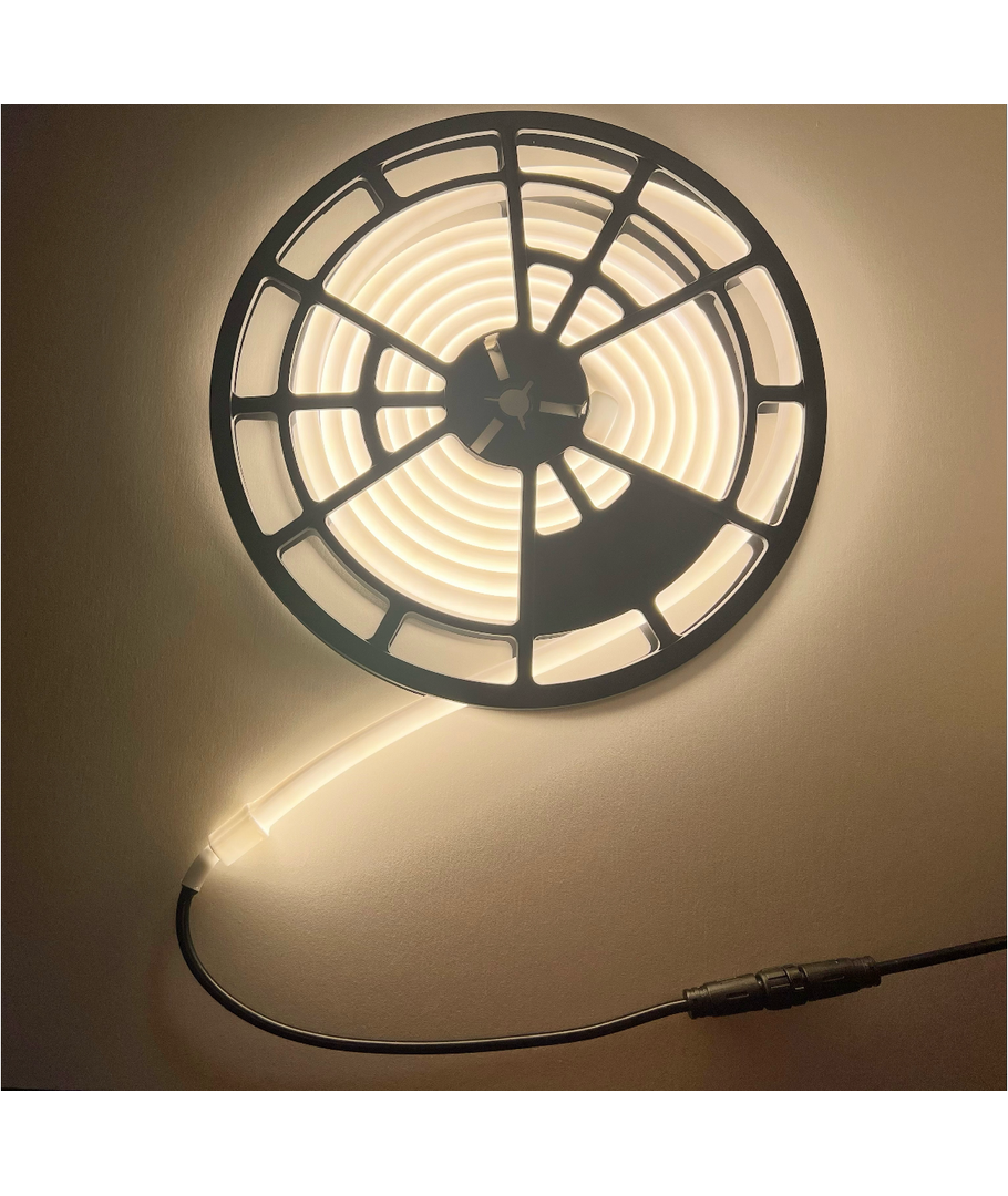 Den dimbara stripen drivs med 24V DC, vilket garanterar stabil och hållbar drift. Tack vare dess ljusstyrka på 1200 lumen per meter kan du förvänta dig en klar och infallsrik belysning som sprids i 270 grader för en jämn ljusfördelning.