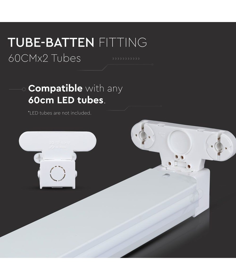 Öppen LED-armatur färdig för montering av T8 LED-lysrör.