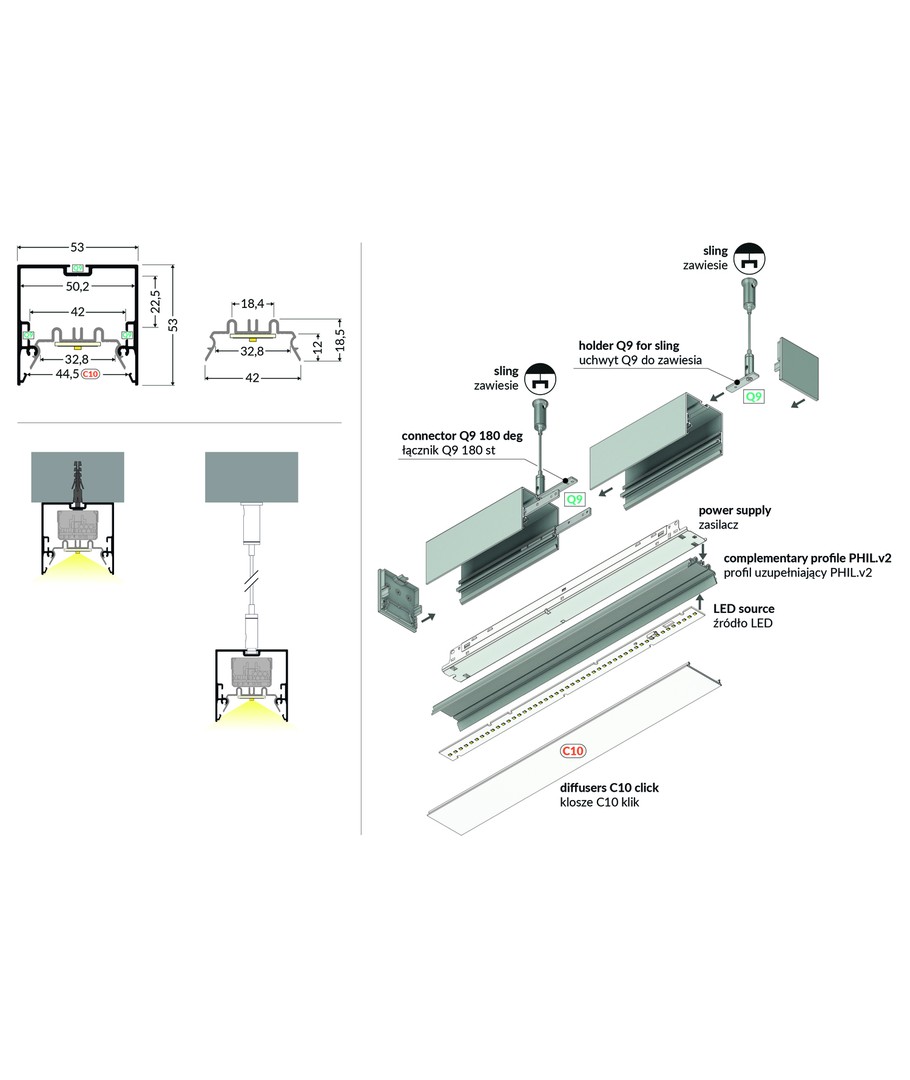 Anodiserad, påbyggnad, LED skena