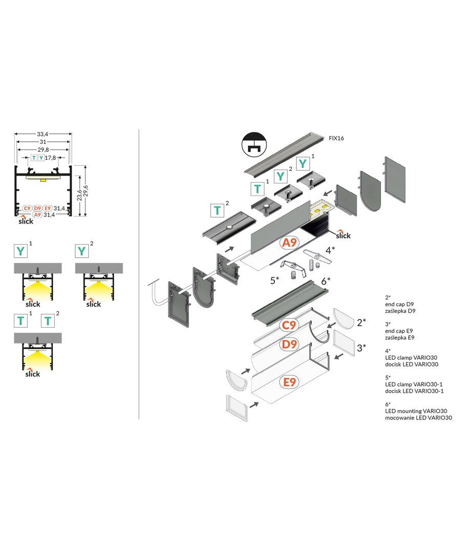 2m aluprofil VARIO30-02 ACDE-9/TY - Svartanodiserad för utanpåliggande installation av LED-skena erbjuder en robust och stilren lösning för LED-installationer.