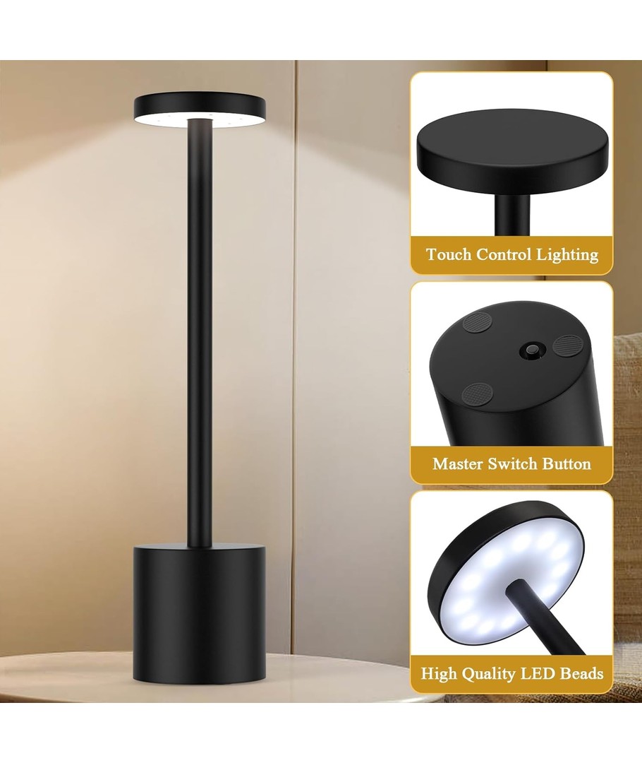 Förvandla vilket rum som helst med denna stilrena och uppladdningsbara LED bordslampa. Den är designad för att passa perfekt in i ditt hem eller kontorsmiljö med sin eleganta svarta färg. Lampan har en touch dimbar funktion och ger en mängd olika ljusinställningar för att passa varje stämning och behov.