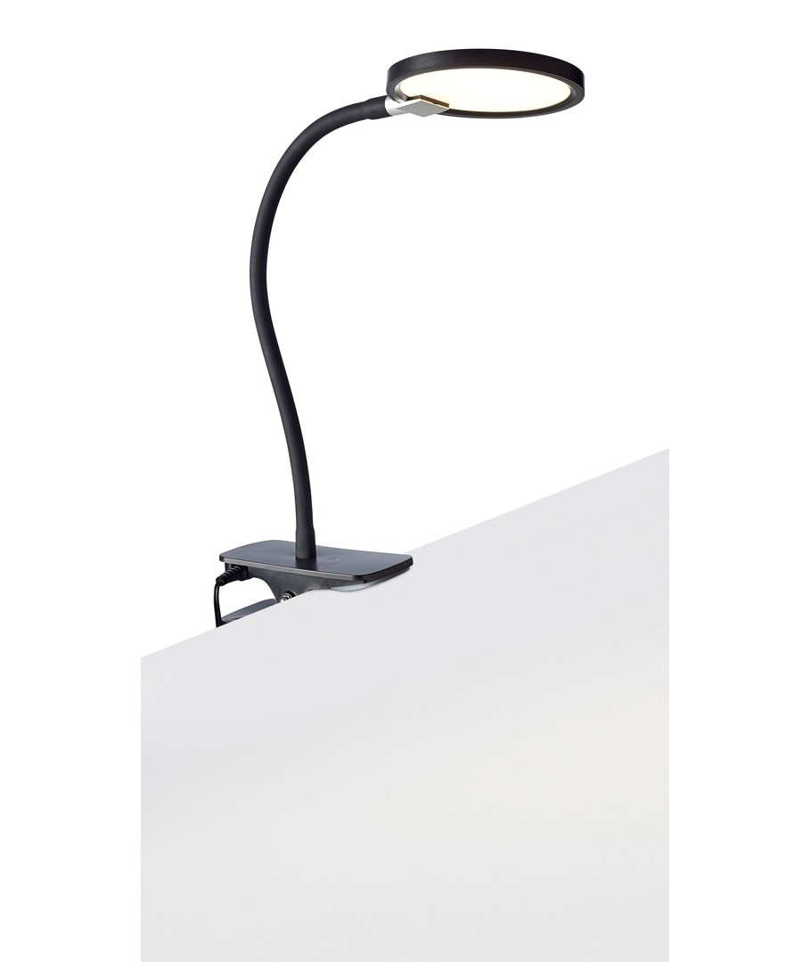 Elegant, vinklingsbar bordslampa från Nielsen Light, med flexibelt stativ och klämma så att den kan fästas på sidan av skrivbordet.