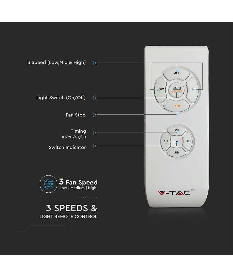 60W takfläkt - LED, ljus skylt, RF-kontroll, 5 blad, AC motor V-TAC Expandera