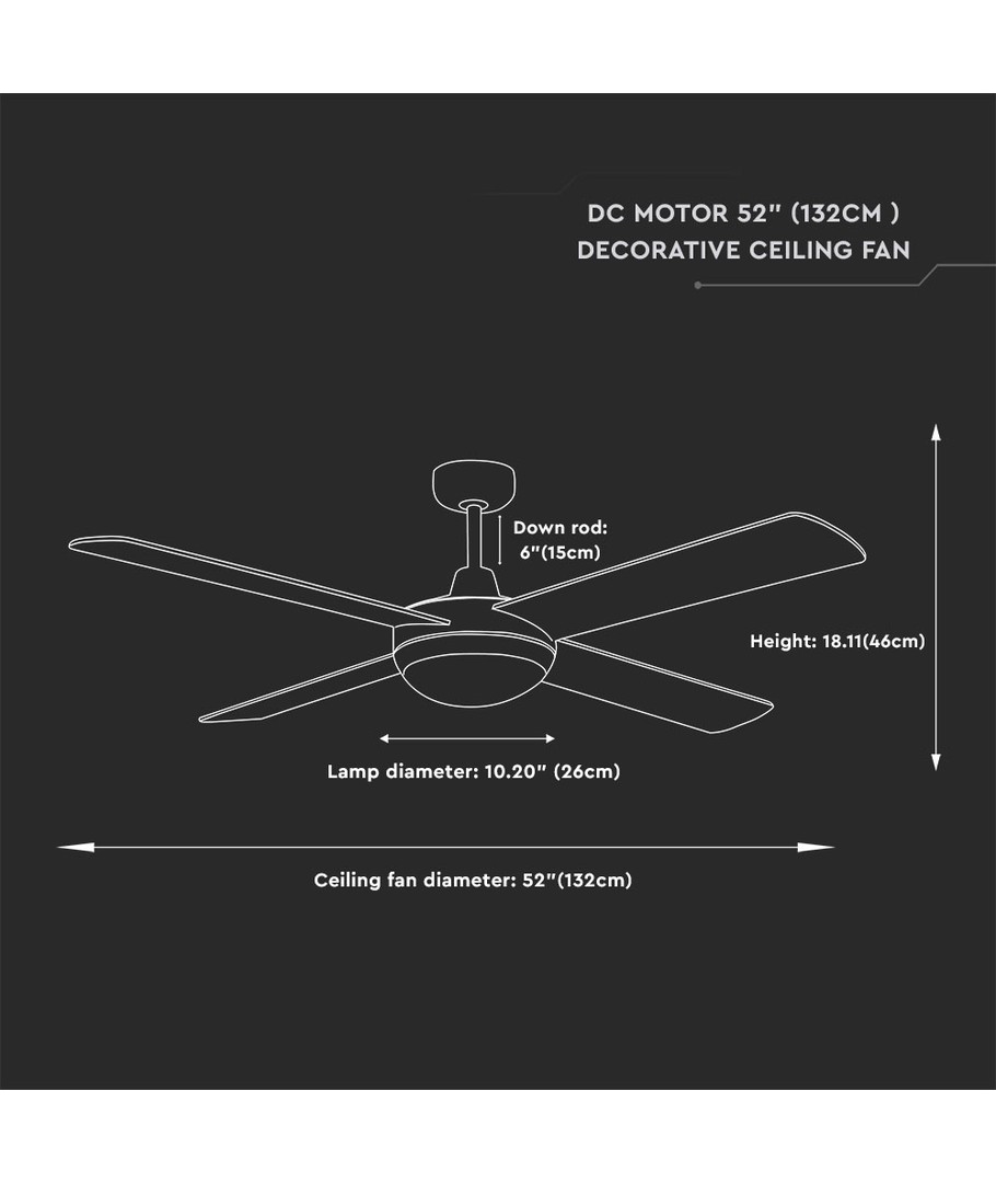 - Design: Utrustad med 4 blad och en stilren DC-motor, för både estetik och prestanda.