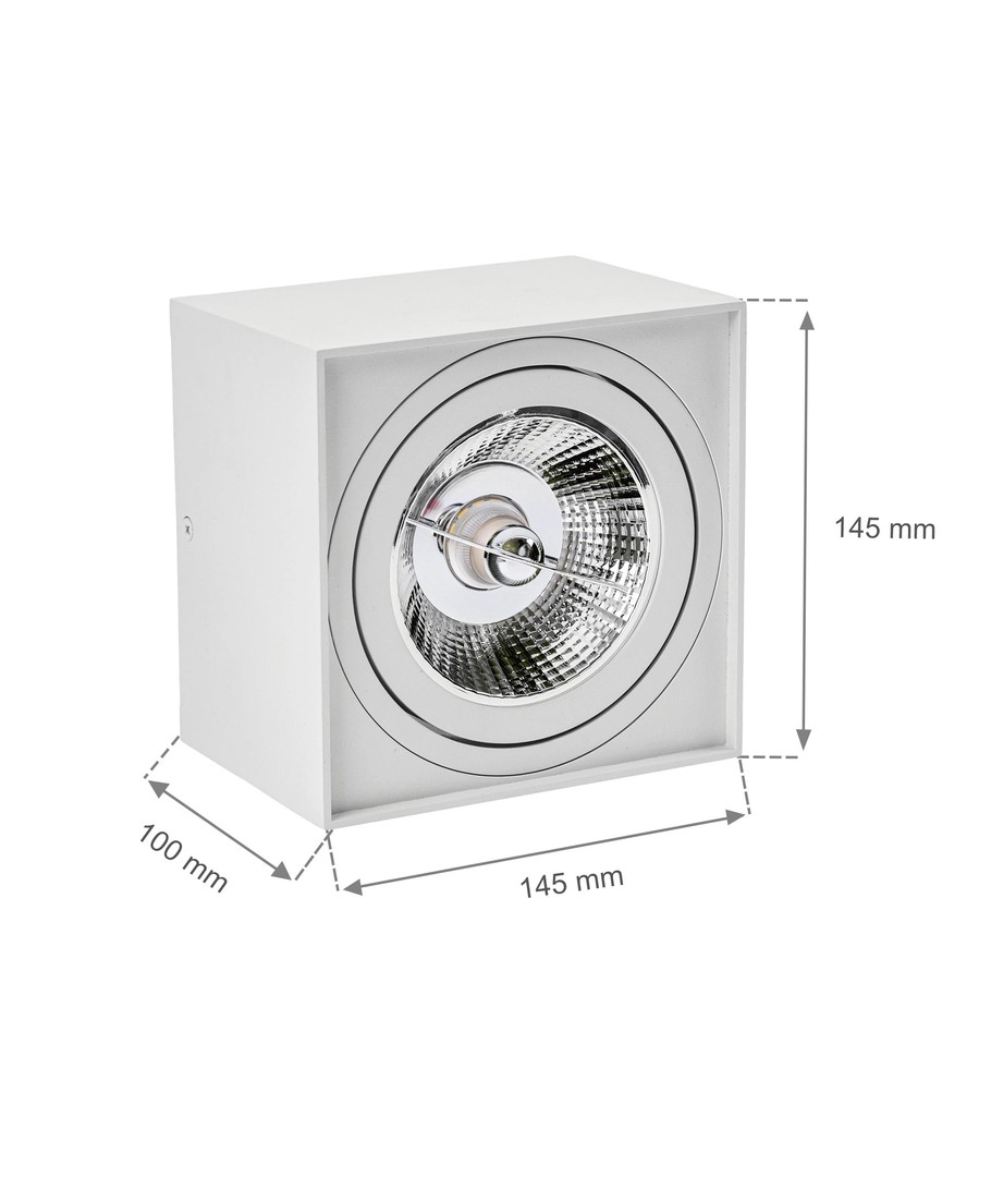 Upptäck den snygga och funktionella taklampan CHLOE AR111 - en fyrkantig, vit lampa som kombinerar en elegant finish med justerbar belysning.