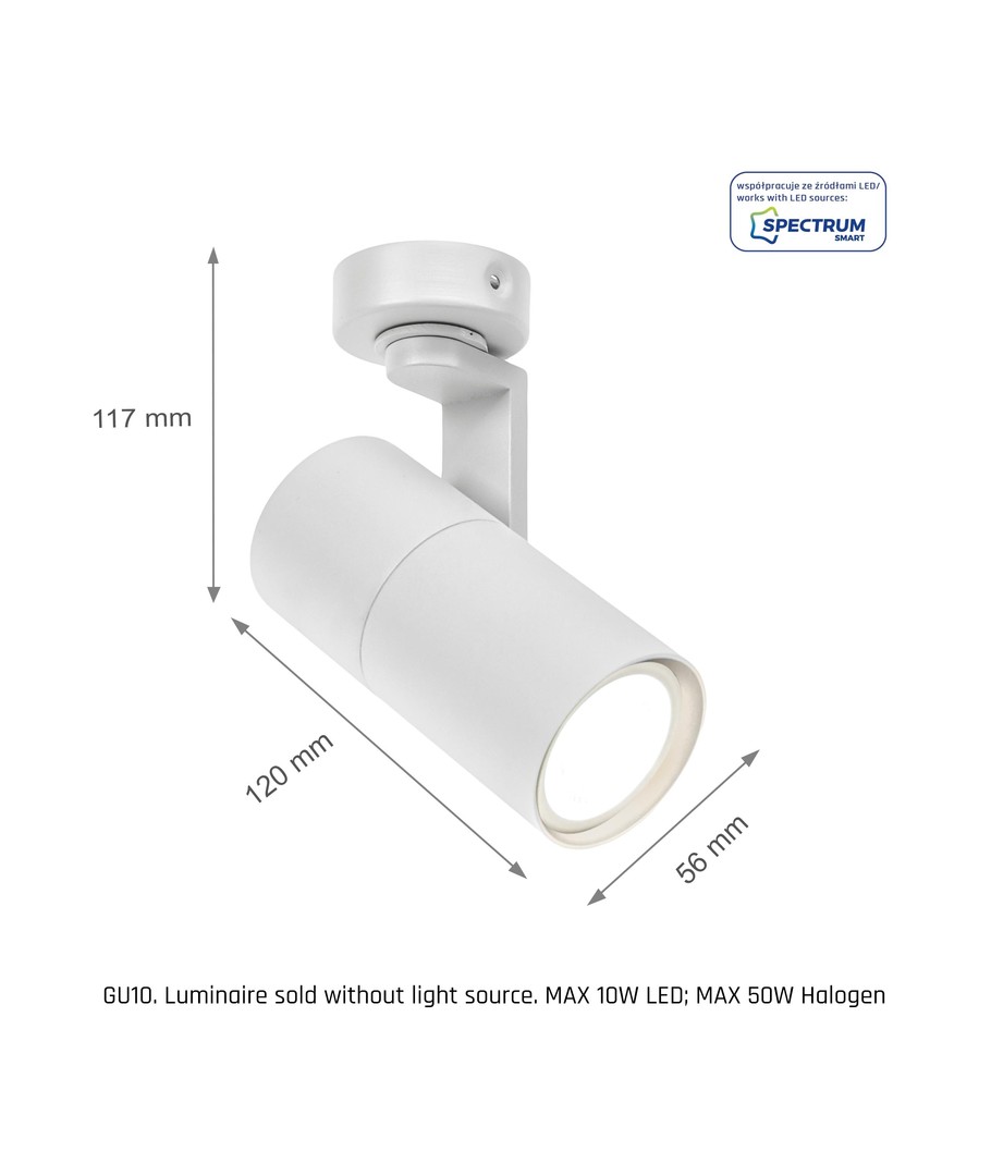 Denna eleganta vägg/takmonterade spot i vit finish är designad för att ge ditt rum en modern touch och optimera belysningen med stor flexibilitet.