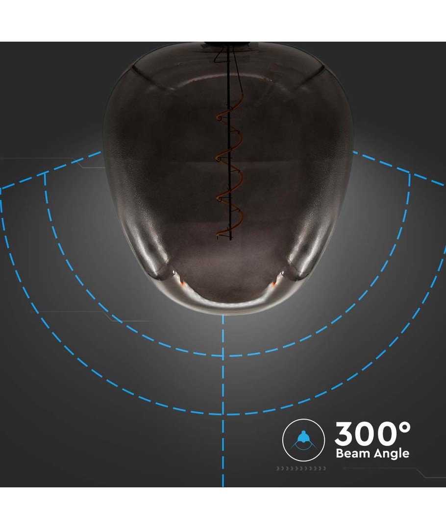 Med sin eleganta äppelformade design och svarta glasöverdrag smälter denna glödlampa enkelt in i moderna inredningar. Det ger inte bara ljus utan fungerar också som en estetisk dekorativ del av din belysning.