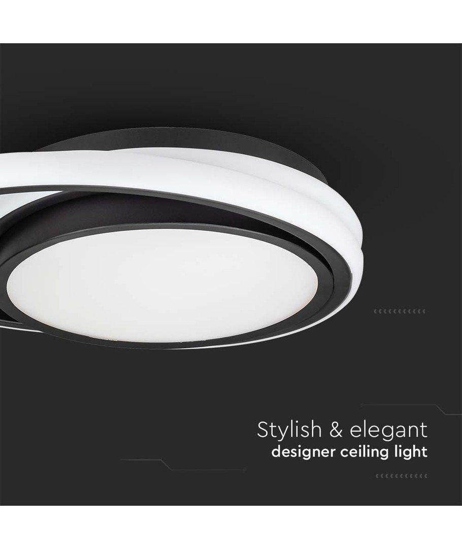 Lampans dubbelrundade form och eleganta svarta färg passar sömlöst in i modern inredning och förhöjer stilnivån i vilket rum som helst. Den är designad för enkel och säker montering i tak eller på vägg.