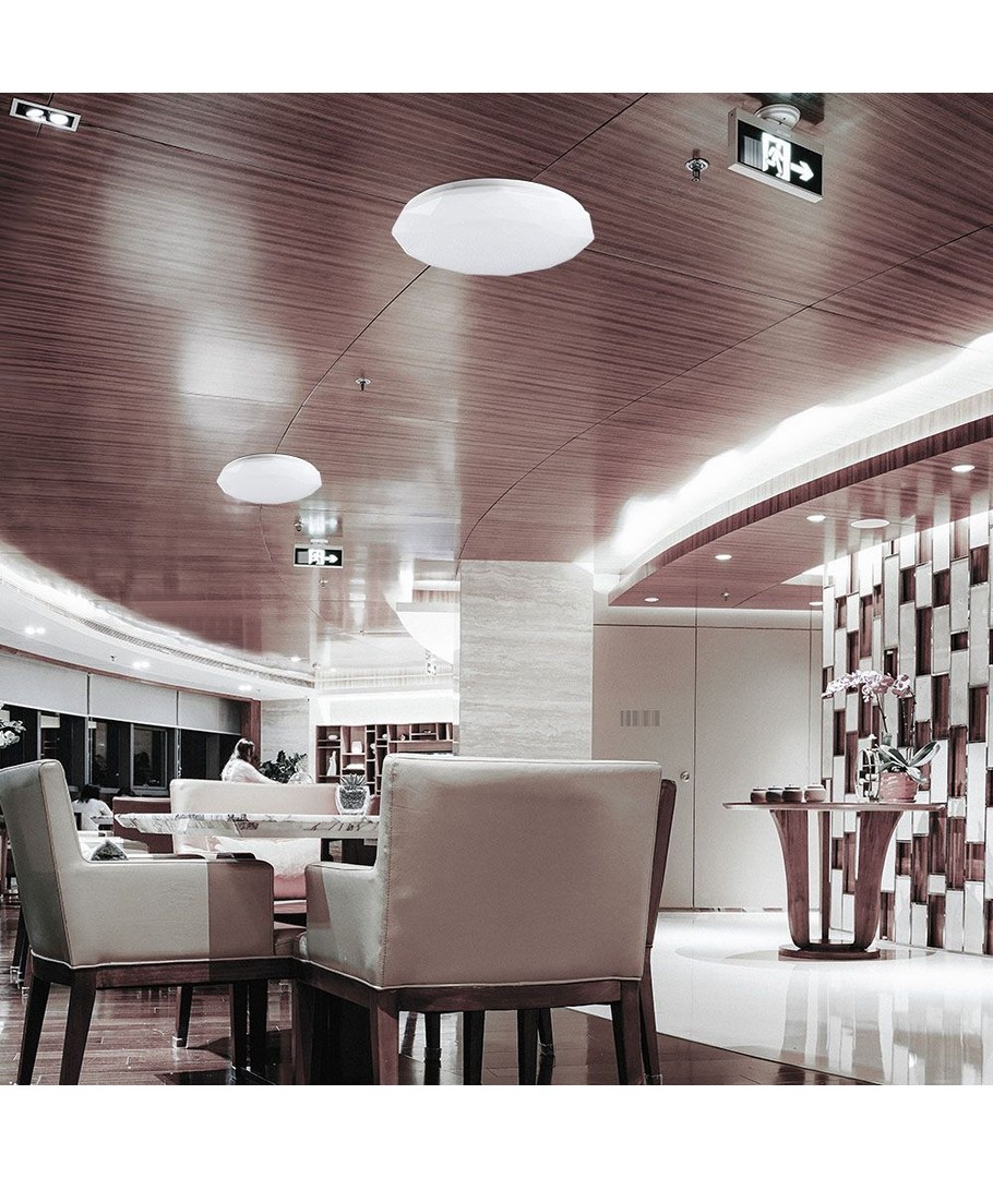 Denna LED design taklampa kombinerar stil och funktionalitet för att ge ett vackert inslag i vilket rum som helst. Med sin eleganta diamantformade design och CCT-skiftande teknologi, kan du enkelt anpassa ljusets färgtemperatur för att skapa rätt stämning.