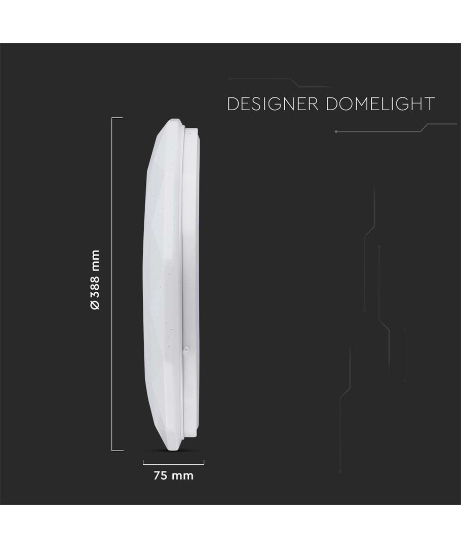 Taklampan är försedd med ett elegant diamantöverdrag som förhöjer det estetiska värdet i varje rum. Dess moderna utformning smälter sömlöst in i olika inredningsstilar och ger ett lyxigt intryck.