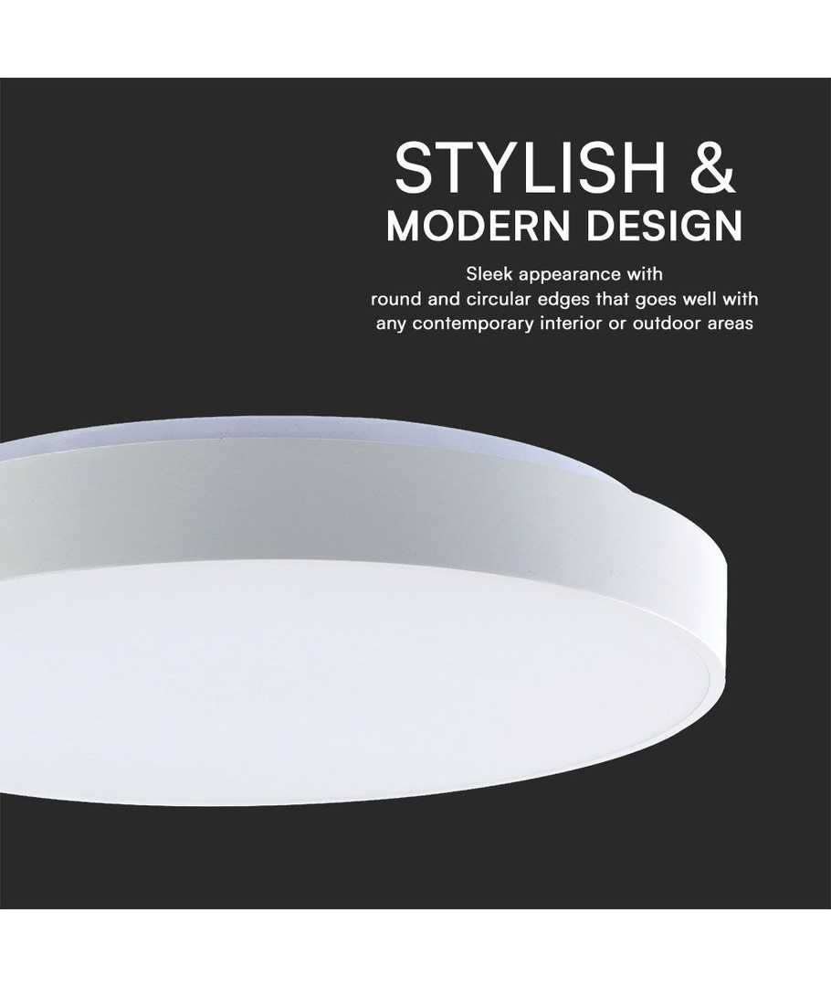 V-Tac Rund 40W LED taklampa kombinerar energieffektivitet, modern estetik och användarvänlighet, vilket gör den till en perfekt belysningslösning för alla som söker flexibilitet och stil.