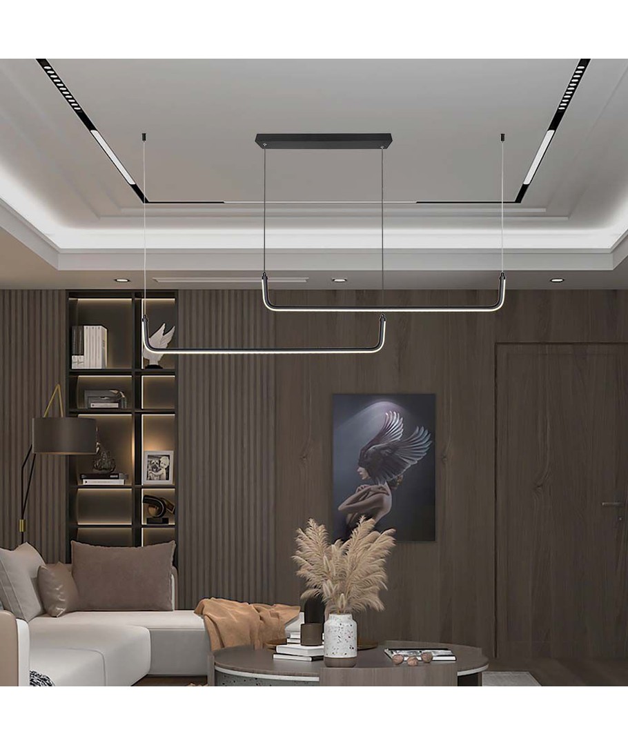 Denna eleganta LED hänglampa med en effekt på 24W kombinerar stil och funktionalitet, perfekt för alla moderna hem eller arbetsplatser. Med sin unika design i svart blir den ett stilrent tillskott till din inredning.
