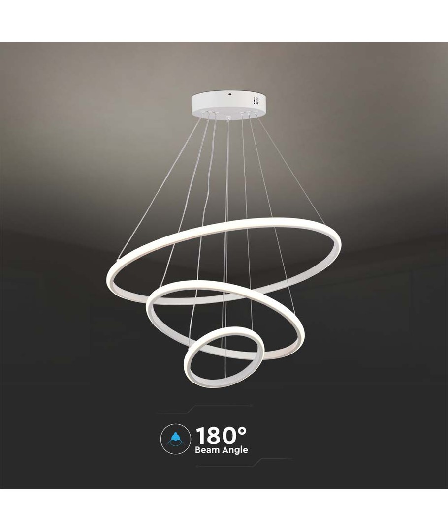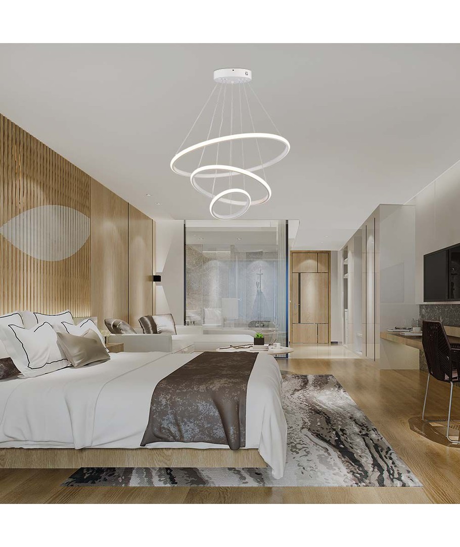 Denna LED hängande dekorativa lampa är perfekt för att lysa upp ditt hem med stil. Med en kombination av tre olika storlekar, Ø600, Ø400 och Ø200, och en elegant vit finish, blir den en iögonfallande del av din inredning.