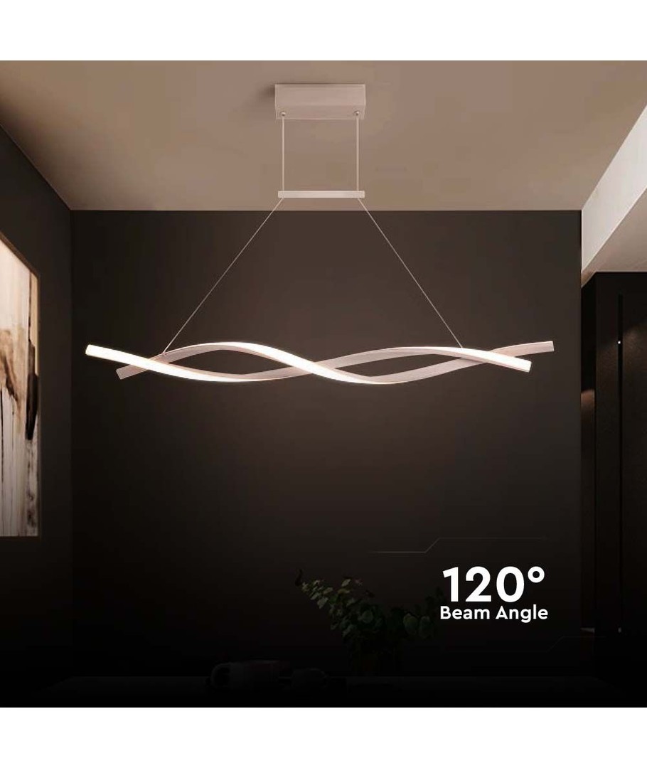 Denna hänglampa är det perfekta valet för de som söker en kombination av funktionalitet och modern design. Tack vare dess höga ljuskvalitet och effektiva ljusspridning, passar den utmärkt i arbetsutrymmen, kök eller vardagsrum, och garanterar ett komfortabelt och naturligt ljusflöde i hela rummet.