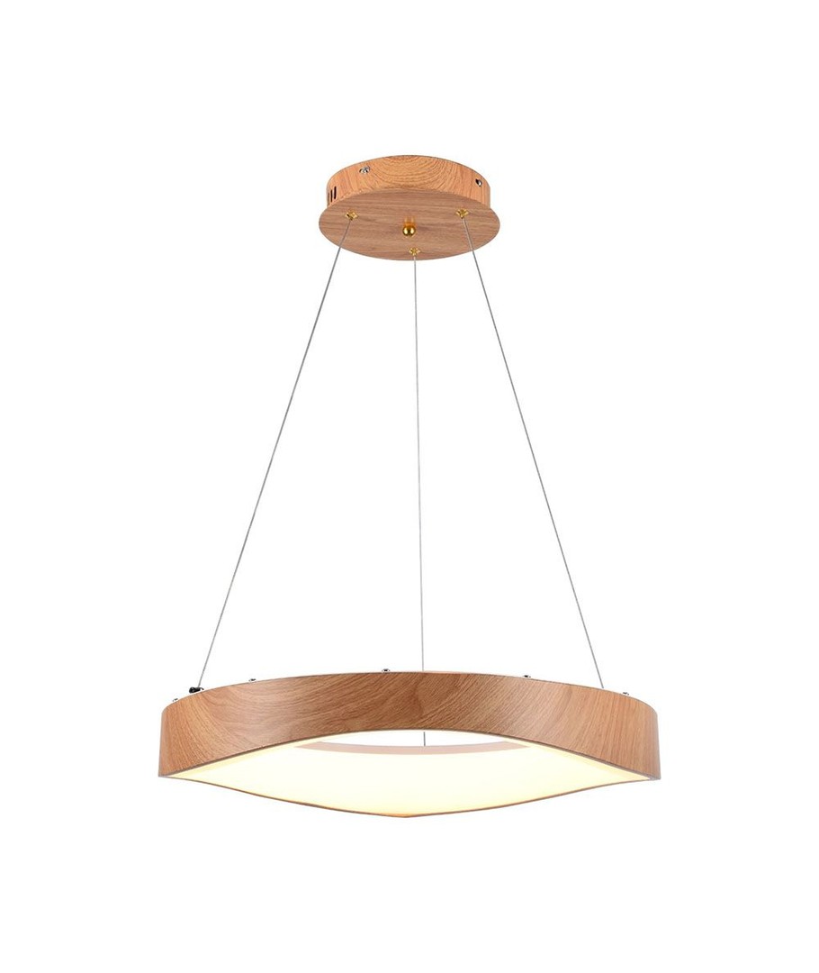 Denna stilrena och eleganta LED-designhänglampa kombinerar träfärg och vitt hus för att skapa en tidlös belysningslösning som passar perfekt i både moderna och klassiska interiörer.