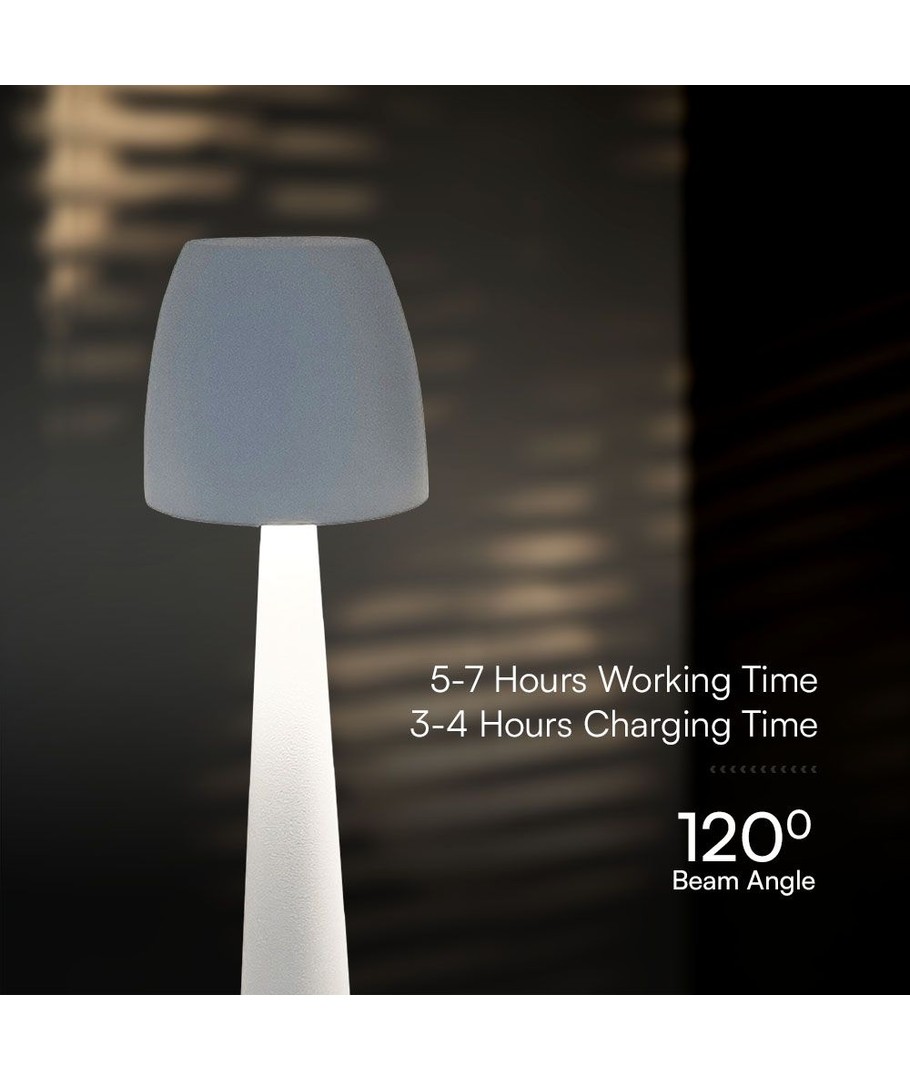 Denna eleganta och moderna bordslampa är designad för att passa perfekt in i vilket hem som helst. Tack vare sin uppladdningsbara funktionalitet kan den användas överallt utan att behöva vara ansluten till ett eluttag.