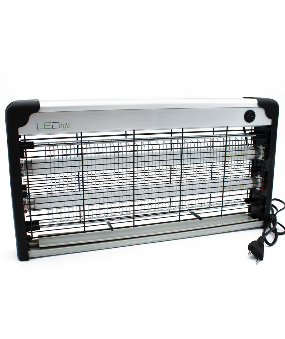 2 st. utbytbara UV-rör lockar till sig insekterna, varefter elnätet dödar dem. Det yttre gallret förhindrar oavsiktlig kontakt med elnätet.