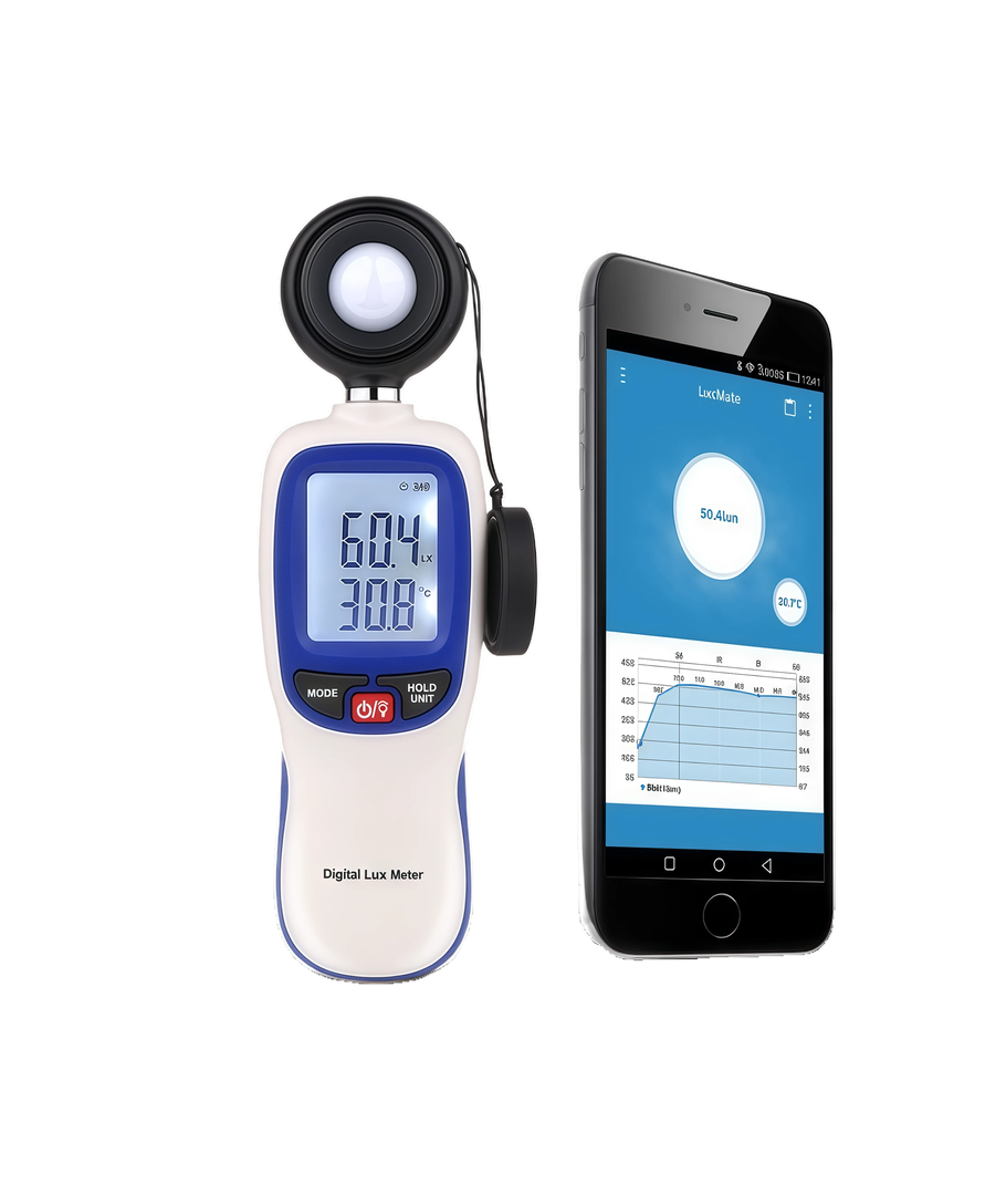 Mäter mängden ljus med möjlighet att spara mätningens historik i appen på din smartphone.