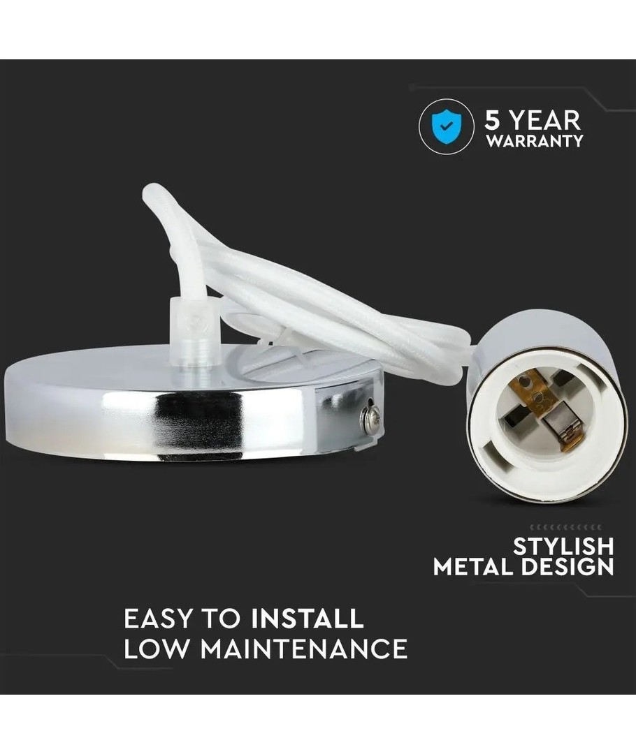 V-Tac armatursockel - Krom metal, vit ledning, E27 v-tac Expandera