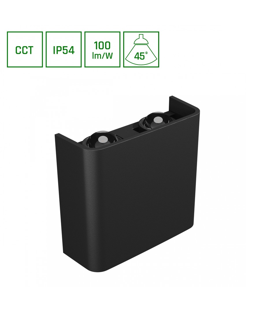 Upplev den eleganta Luna 4W svart upp/ned vägglampa, som kombinerar stilfull design med mångsidiga belysningsmöjligheter, perfekt för att skapa rätt stämning utomhus.
