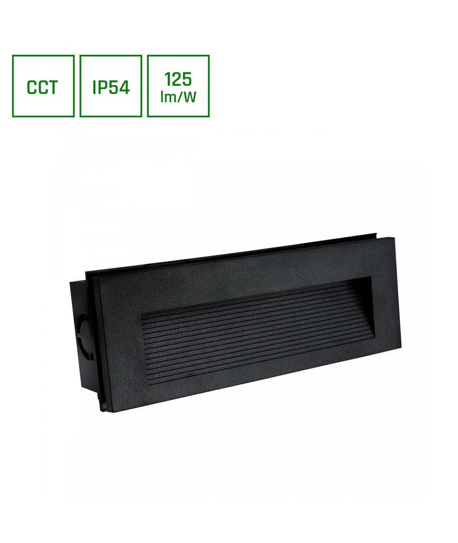 6W infälld trappbelysning CCT - 3 ljusfärger, IP54, Svart, 23 x 8,4 x 5,2cm, 230V Spectrum Expandera