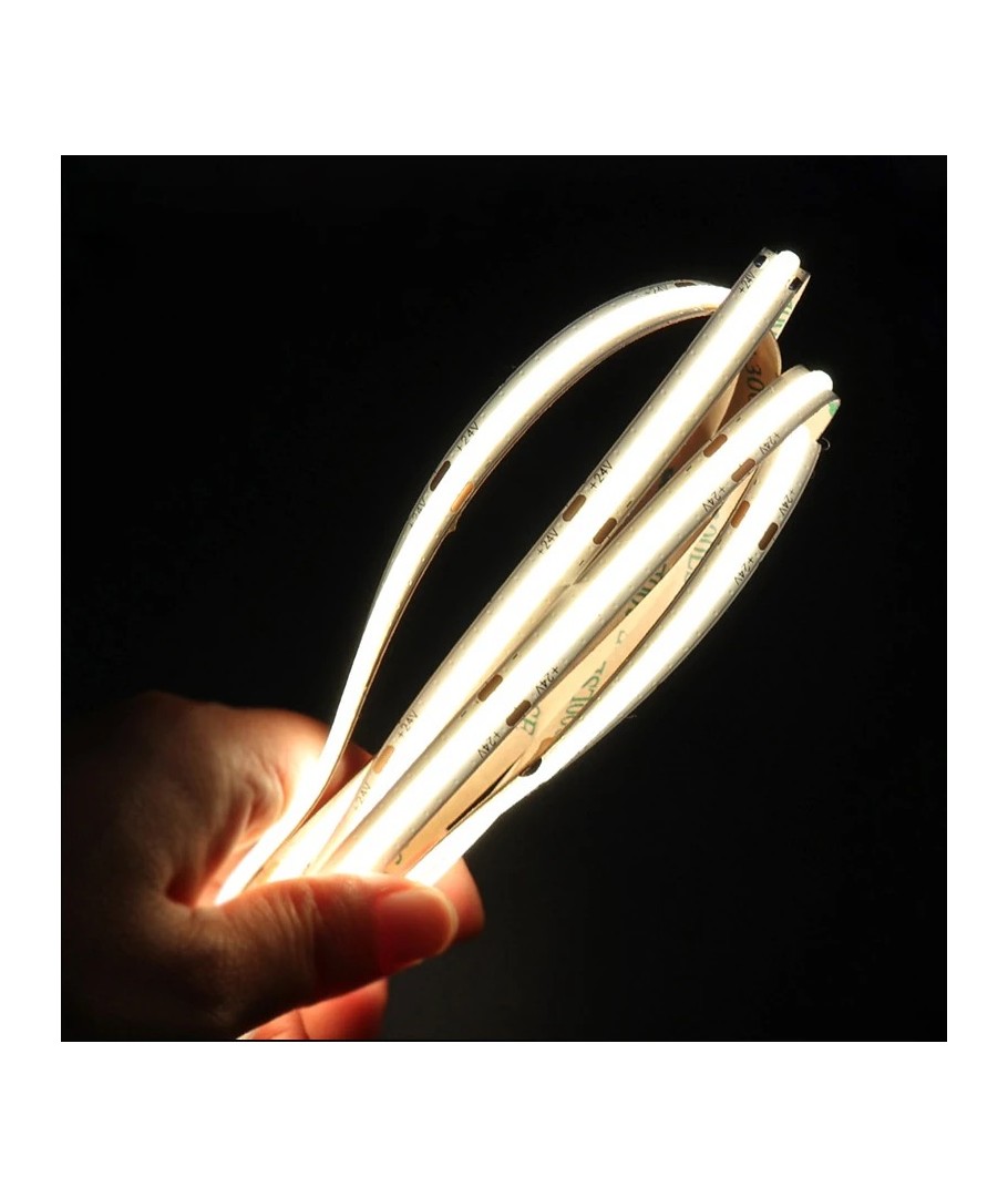Upplev enastående ljuskvalitet med denna COB-LED-strip som erbjuder en perfekt kombination av funktionalitet och estetik. Med 12W per meter är denna LED-strip designad för att ge en stark och harmonisk belysning, idealisk för både hemmiljöer och professionella projekt.
