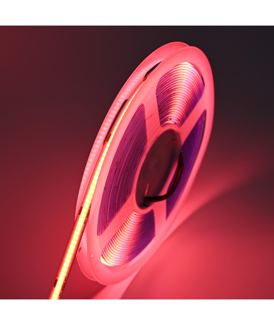 Enfärgad rosa COB LED strip med 320 LED:er per meter.