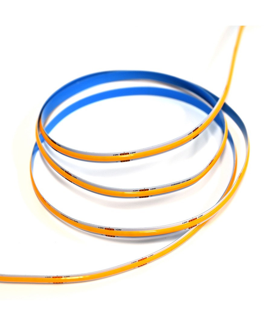 Enfärgad gyllengul COB LED strip med 320 LED per meter.