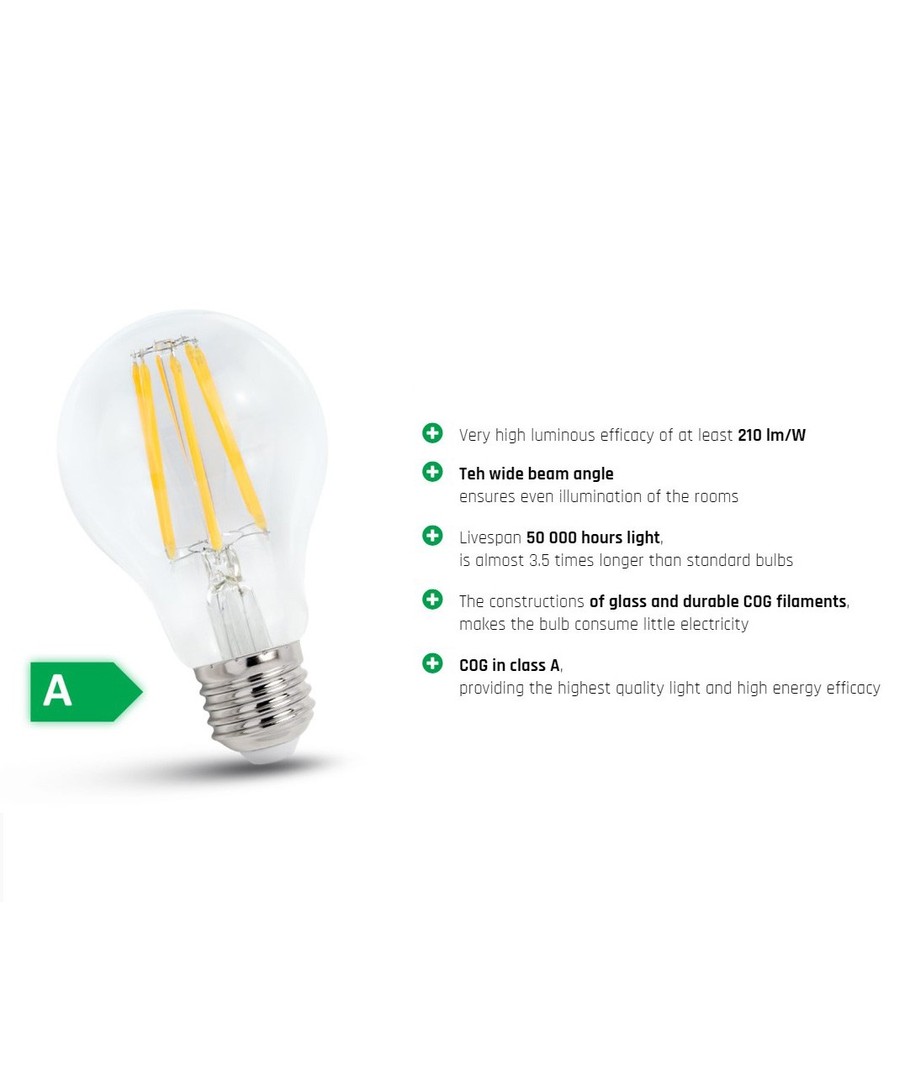 212 lm/W, A60, filament, klart glas, E27