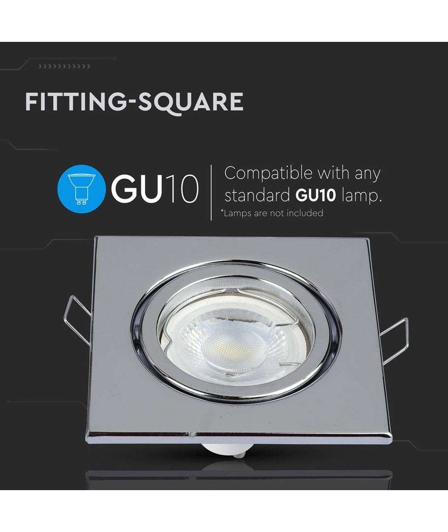 Denna GU10/MR16 Fyrkantig downlight är designad för snygg och effektiv belysning i hemmet eller på kontoret, utan medföljande ljuskälla för maximal flexibilitet.