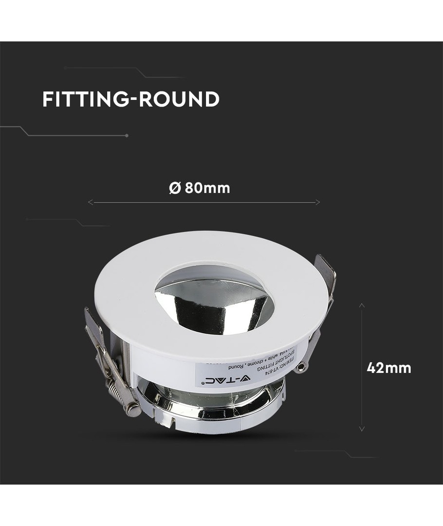 GU10 infälld spot - Rund, vit/krom, IP20, Hål: Ø7,5 cm, Mått: Ø8 cm V-TAC Expandera