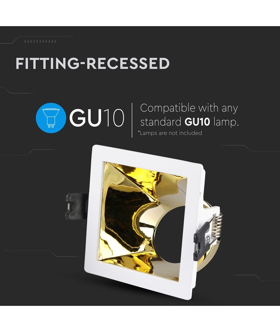 GU10 infälld spot - Fyrkantig, vit/guld, aluminium, hål: 80x80mm, utan ljuskälla V-TAC Expandera