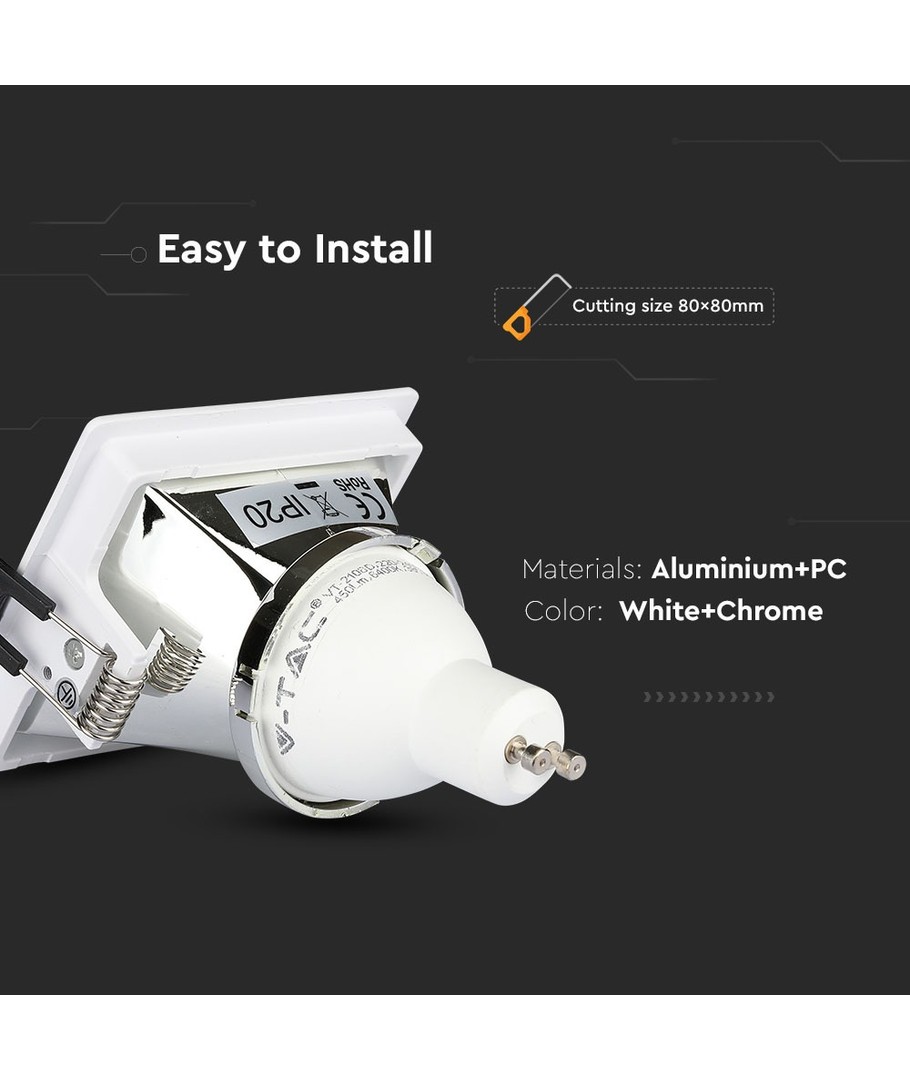 Utan ljuskälla, IP20, Hål: 7,4x7,4 cm, Mått: 9,9x9,9 cm