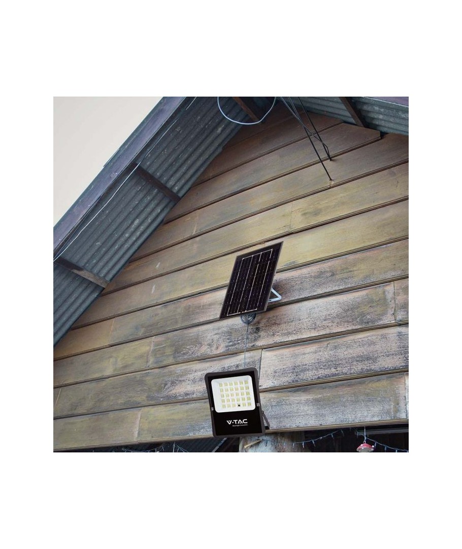 V-Tac 20W LED Solar strålkastare - Svart, en praktisk och energieffektiv lösning för utomhusbelysning. Denna strålkastare inkluderar en solcell och fjärrkontroll och är designad för att klara alla väderförhållanden med sin IP65-klassning. Den har även en praktisk timerfunktion som låter dig ställa in den så att den stängs av automatiskt efter en viss tidsperiod. Med en full laddningstid på endast 4 timmar kan denna projektor ge 8 timmars ljus. Den kommer också med en 5 meter lång sladd, vilket ger dig flexibiliteten att placera den där du behöver den.