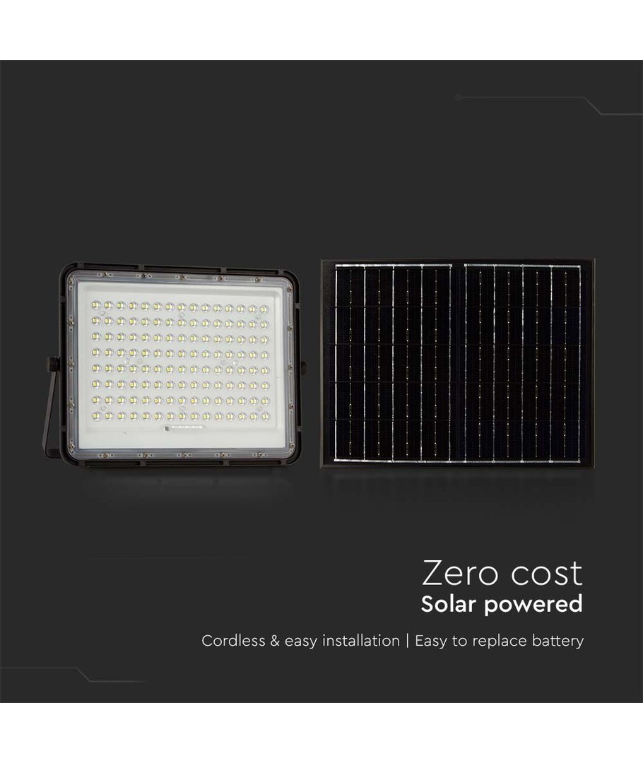 Med sin IP65-klassificering är denna solcellstrålkastare idealisk för utomhusbruk. Den tål vattenstänk och regn, vilket gör den perfekt för alla väderförhållanden.
