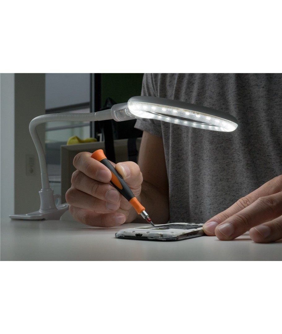 Designad med både en klämma och fot, kan denna lampa enkelt monteras på bord, hyllor eller skrivbord för stabil användning. Den eleganta vita färgen harmoniserar med olika inredningsstilar utan att ta över.