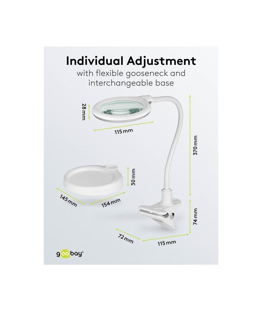 Förstoringslampan är utrustad med en svanhals som ger maximal flexibilitet, vilket gör det enkelt att justera lampans position för optimal ljusinställning. Tack vare den höga ljuskvaliteten speglas färger på ett naturligt och vackert sätt, vilket är perfekt för uppgifter som kräver precision och noggrannhet.